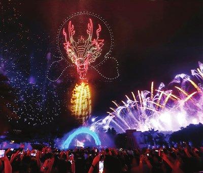 “传统无人机烟花秀长期受限于单机载荷能力,往往需要依赖大规模无人机矩阵的堆砌,才能呈现多画面创意内容。这种方式不仅推高了项目的成本,也难以支撑精细化、多层次、连续变换的复杂艺术表达。”一飞智控相关负责人表示,“这款新型无人机将单机烟花载荷支数从2支提升至6支,可显著减少同等规模表演所需的无人机数量,有效降低成本,并突破画面数量限制,呈现层次更丰富、视觉效果更绚丽的夜空美景。”