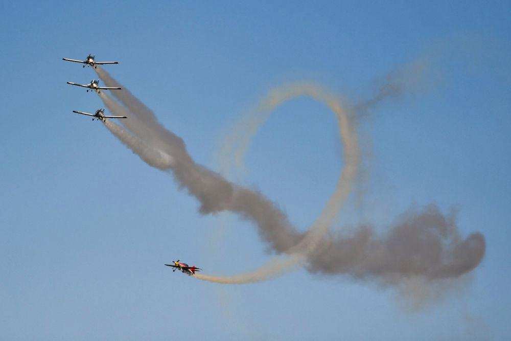 11月21日在株洲芦淞机场拍摄的动态飞行表演。当日,2025湖南(国际)通用航空及低空经济产业博览会开幕。新华社记者陈振海摄